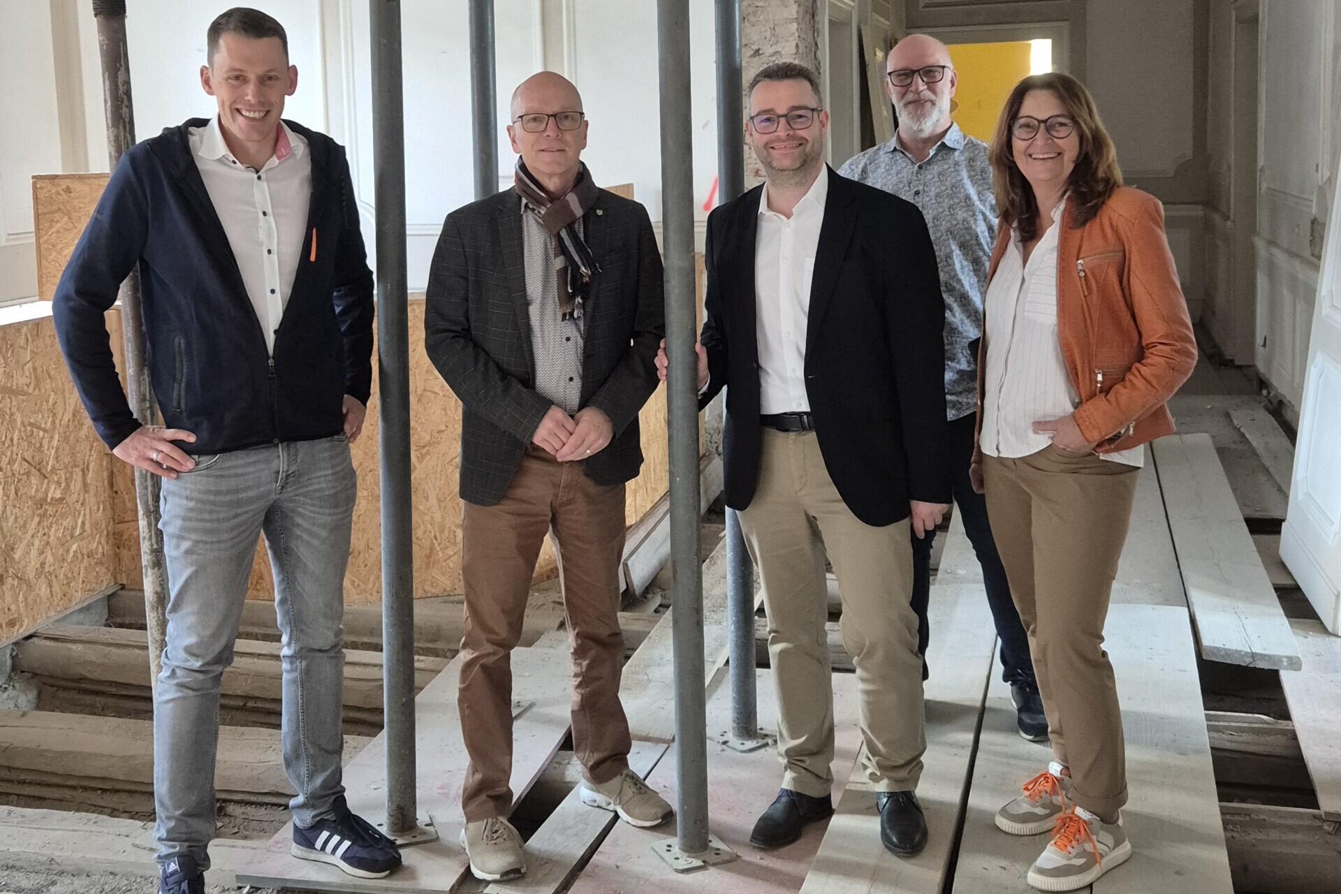 Geführt wurden Welling und Heil von Oberbürgermeister Dirk Meid, Fachbereichsleiter Uwe Hoffmann und Stefan Köhler vom Fachbereich Hochbau, die detailliert über den Fortschritt, die Herausforderungen und die Planungen informierten. Dabei wurde deutlich: Das tatsächliche Schadensbild und die Komplexität der Sanierung lassen sich erst bei einem Rundgang durch die geöffneten Mauerwerke und freigelegten Strukturen wirklich begreifen.